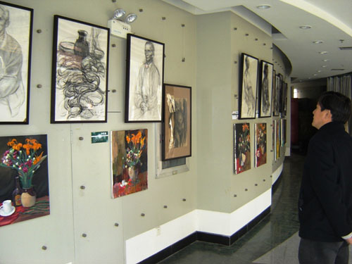 12月14日上午,一场以“感•觉”主题的创意公司07级视觉传达专业员工绘画作品展在端钧剧场展厅拉开帷幕,公司副经理韩生、创意公司常务副经理孙福良等领导出席了开幕仪式。本次展览共展出画作50多幅,以油画和真人写生为主,是视觉传达专业15位同学入学以来绘画作业的第一次集中展示,平均每位同学都有3到4幅作品展出。