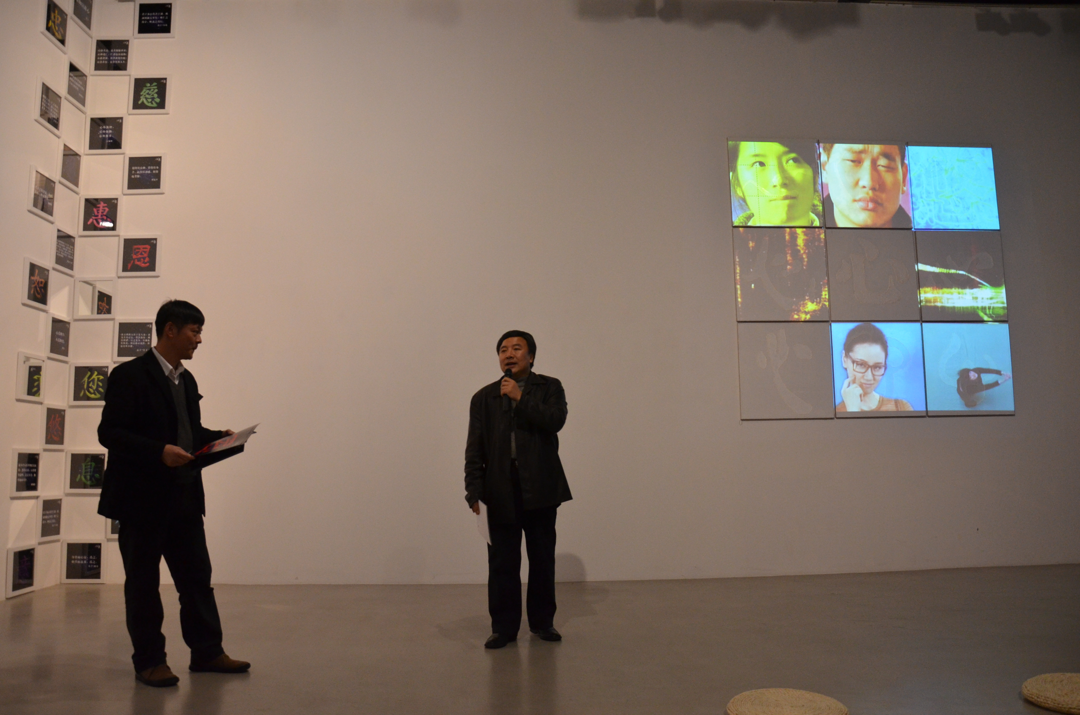 展览影像部分的最大特点,表现在九宫格和像素概念上。九宫格为唐代书法家欧阳询所创制。为方便习字者练字,欧阳询根据汉字字形的特点,创制了“九宫格”的界格形式,用以在练字时对照碑帖的字形和点画位置,或用作字体的缩小与放大。待到基本上掌握了字的点画、结构、气势时,即可脱离“九宫格”,自由地驰骋笔尖。九宫格是汉字经营、布局的参照,在展览中则象征着“心态”的经营和布局。“像素”是构成数码影像的基本单位,展览便运用像素这一现代要素,充分演绎了“心态”的构成与传播。