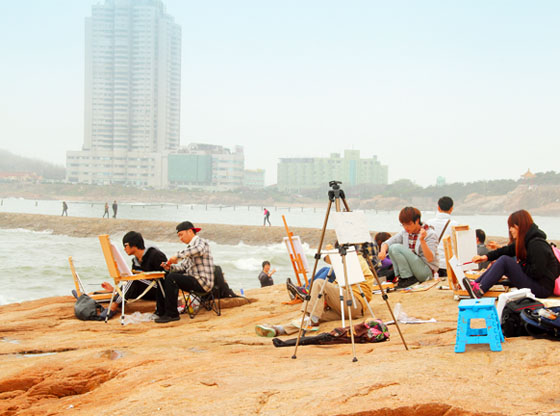 【12媒体创意班青岛写生系列报道】临礁石,观沧海,习画作
