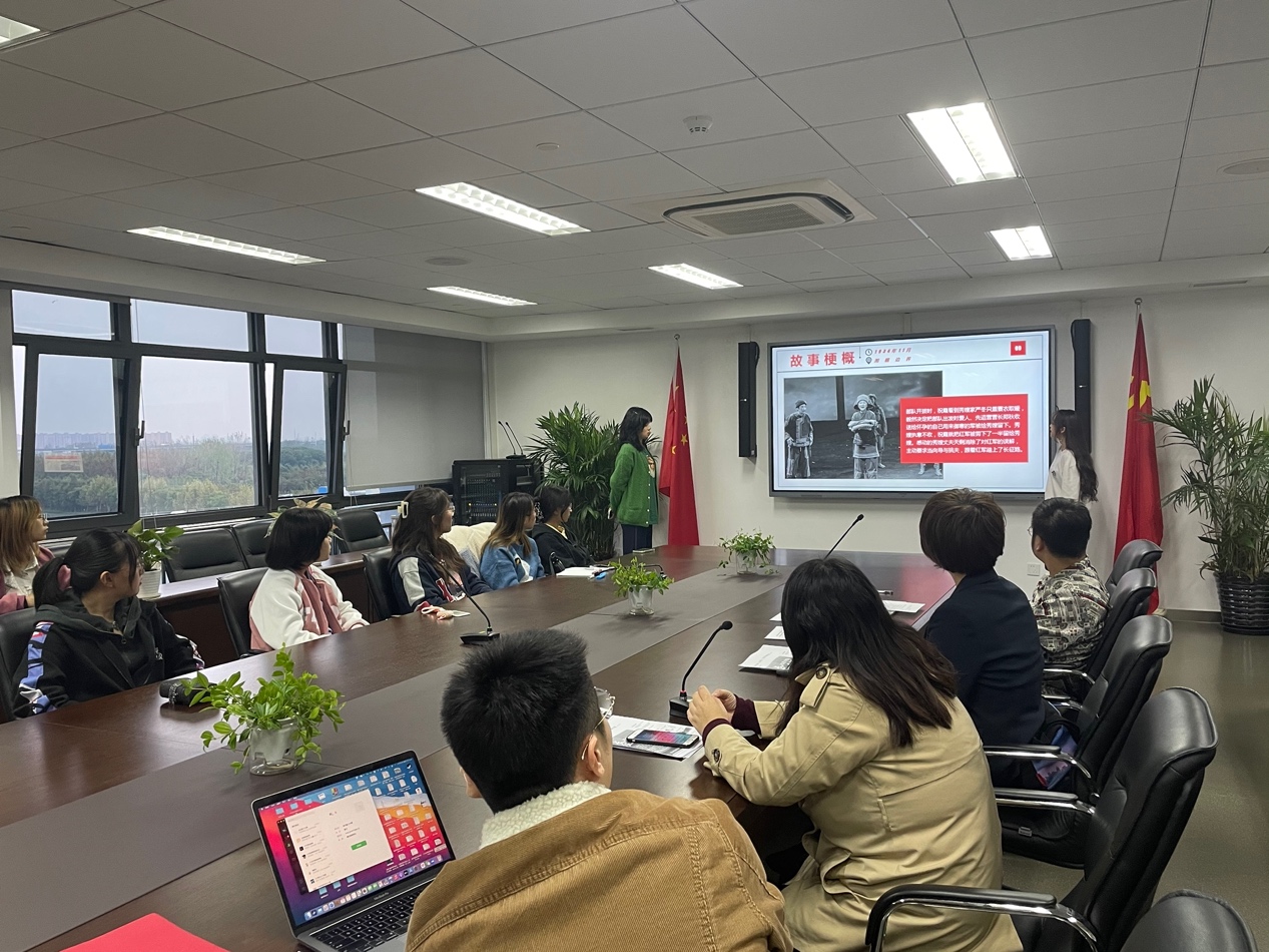 辅导员孔小磊带领大家一起诵读了毛泽东诗词《七律·长征》:“红军不怕远征难,万水千山只等闲。五岭逶迤腾细浪,乌蒙磅礴走泥丸。金沙水拍云崖暖,大渡桥横铁索寒。更喜岷山千里雪,三军过后尽开颜”。抑扬顿挫的诵读,洋溢着革命乐观主义精神和胜利的激情。