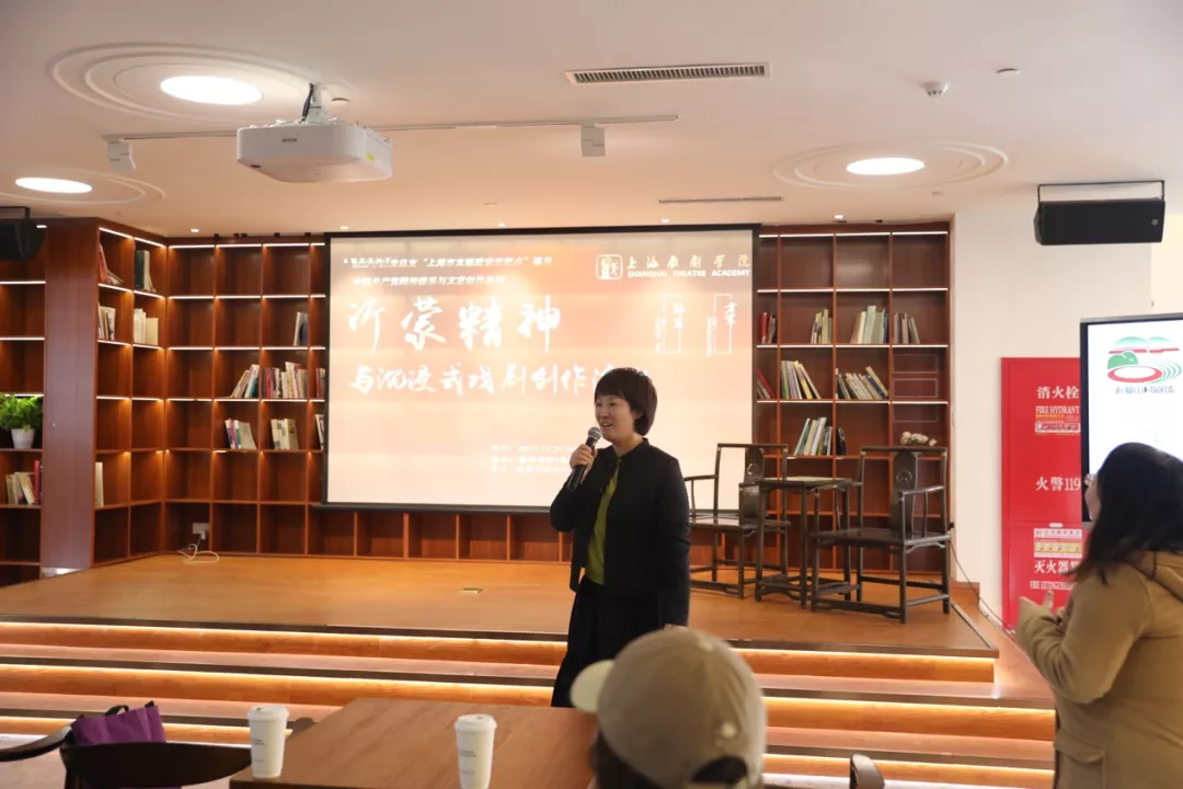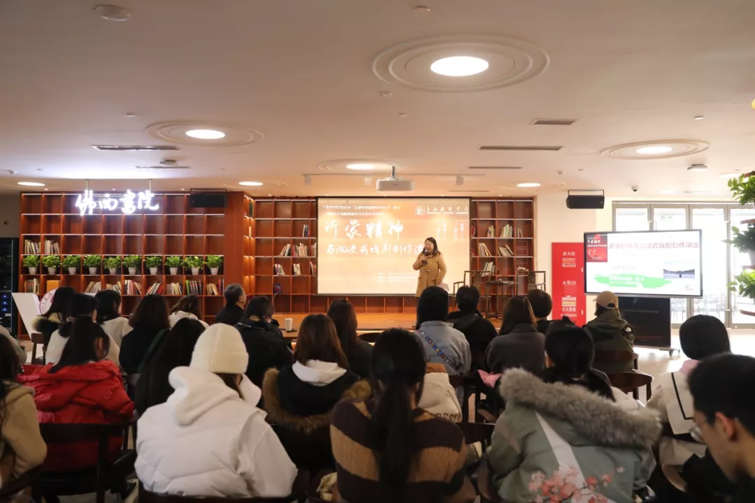 创意公司党总支副书记唐芳老师也结合创意公司参与的在浦江郊野公园演出的党史沉浸式戏剧《寻找第十二人》,鼓励师生们从韩生教授的讲座中汲取养分,更好地进行有价值的艺术创作。