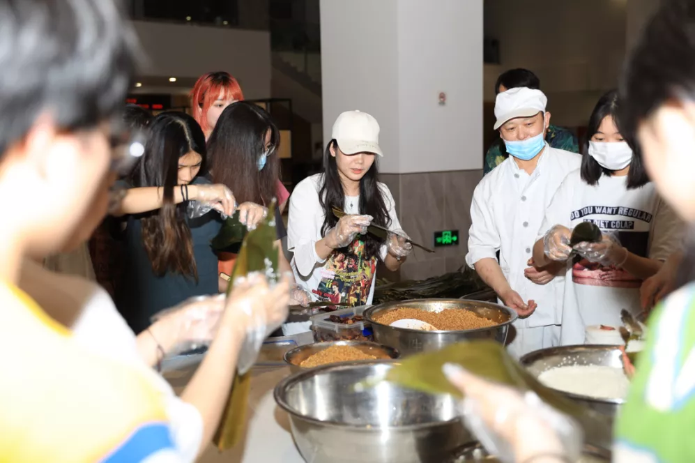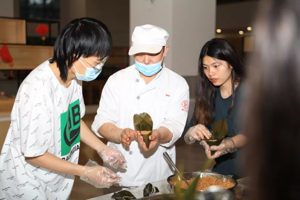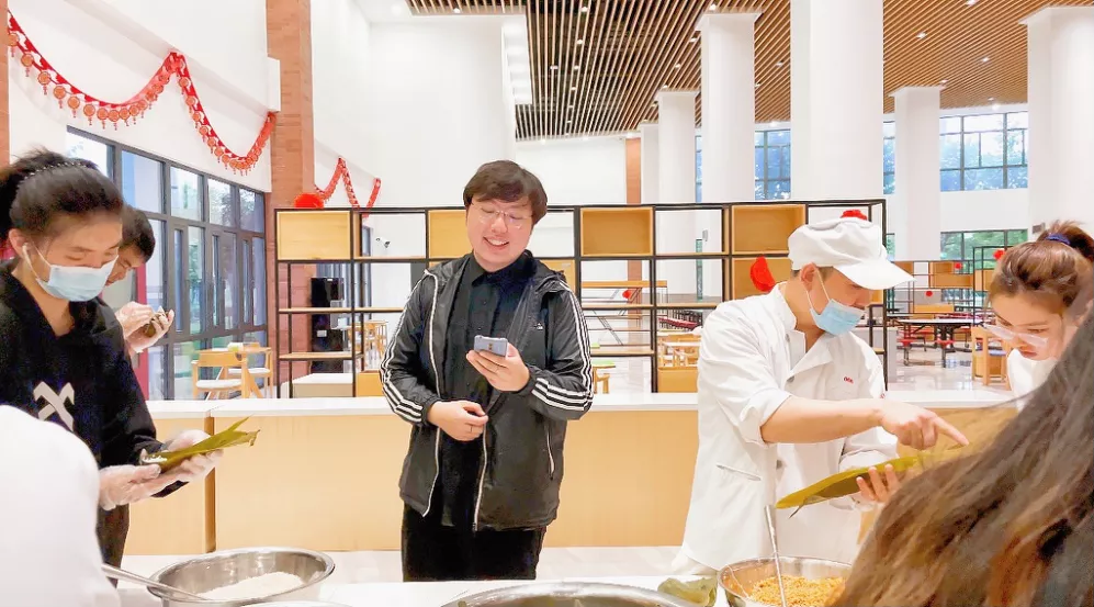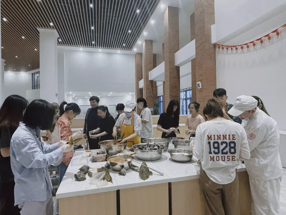 在食堂叔叔阿姨们的带领下,同学们各显神通,积极动手参与包粽子活动。不仅有能人巧匠包得一个个饱满扎实的三角粽,也有充当小小质检员的同学帮忙给不符合标准的粽子进行优化改善。生棕需要煮4小时才可食用,创意公司同学们给当天前来参加的同学们发了粽子券,方便同学们第二天凭券领取自己劳动的果实,参与到“粒粒皆辛苦”的节约粮食行动中来。