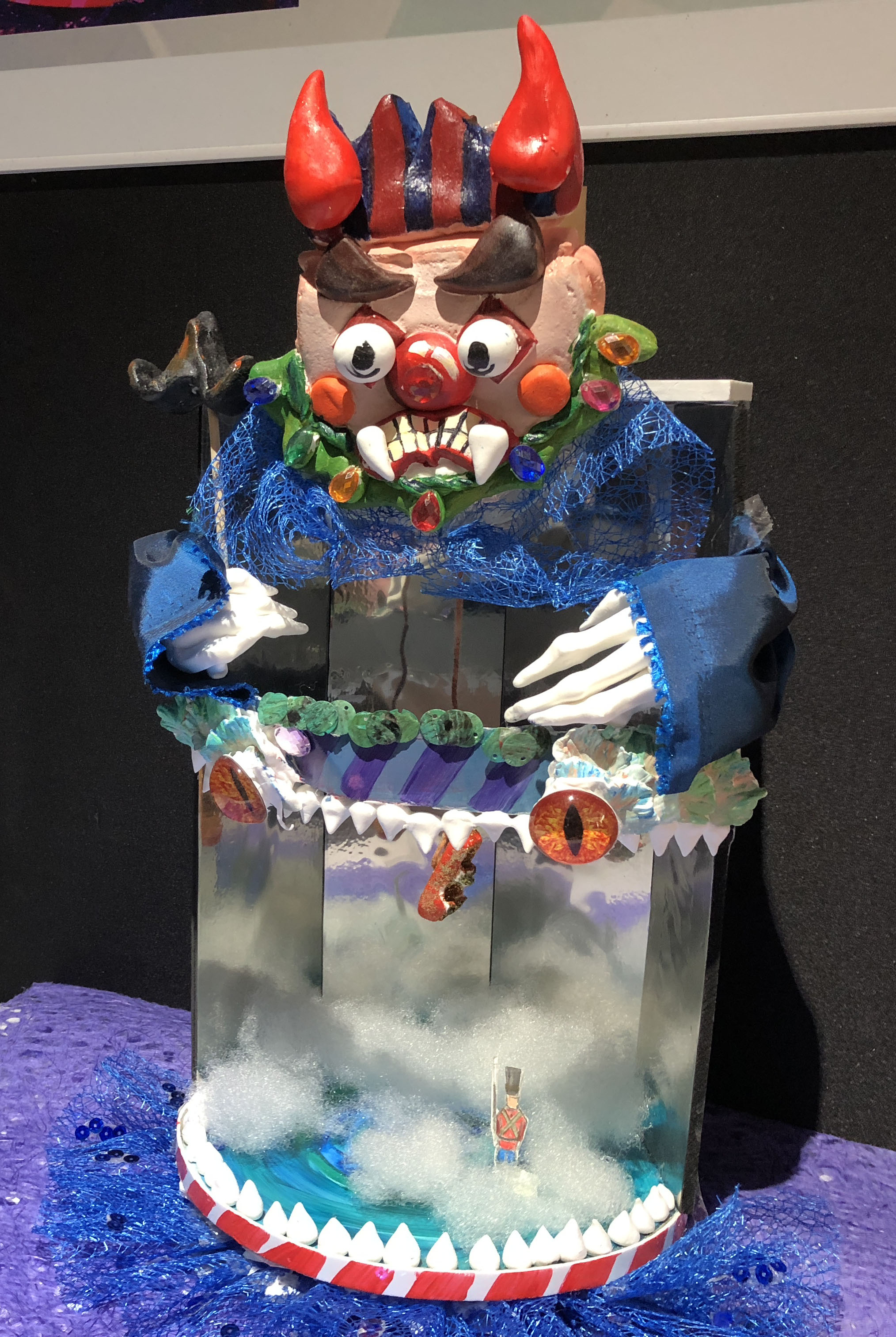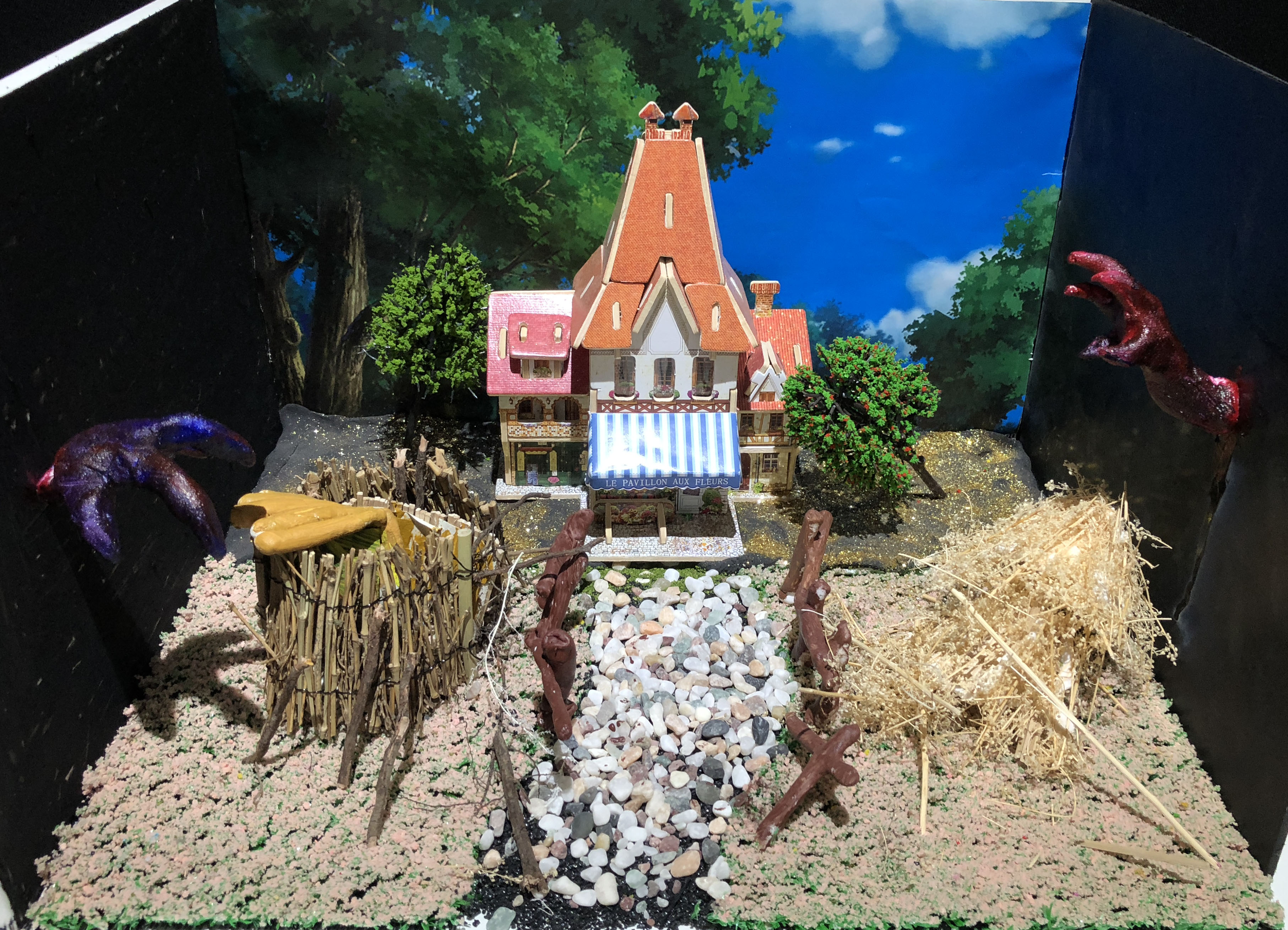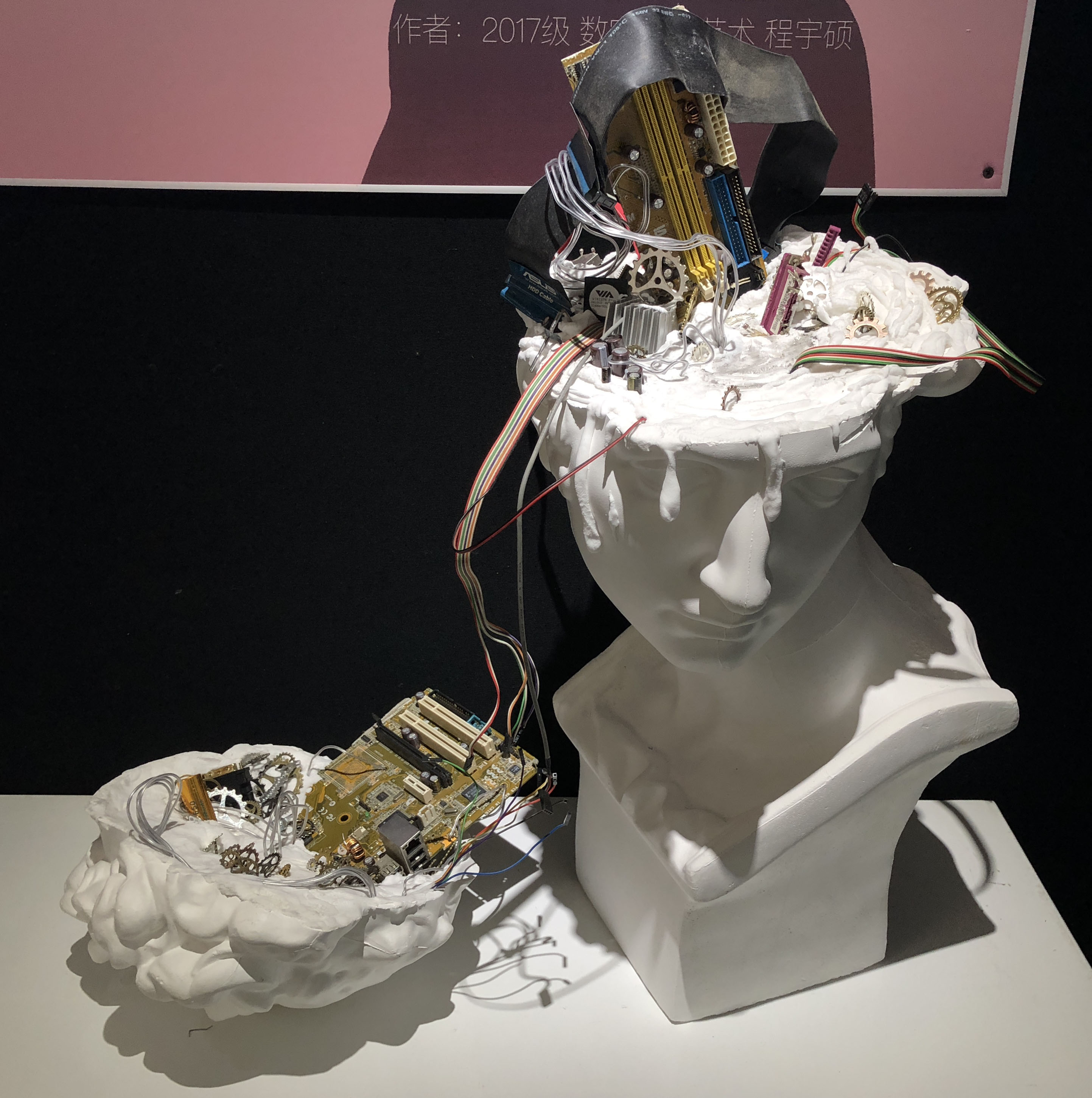 本次展览,你不仅可以看到同学们各种新奇的构思,更会惊叹于17数字媒体艺术专业同学们的动手能力。半年前刚踏入公司,青涩的他们经过学习,已经有了些许成长。同学们对每个主题都进行了认真的筛选,并经历了形成构思、制作草图,完成作品三个阶段。因此,每个作品都有着独特的风格和意义,比如:作品《爱丽丝梦游仙境》能带给人有一种穿越梦境回到童年的感觉;作品《美女与野兽》让观赏者体会到公主与野兽历经时间的爱情;作品《控脑》则能引发对当今社会深深的思考,这个人云亦云的网络时代,人们是否还有自己的思想和观点;作品《自由 战争 和平》能激发观赏者更加珍惜现在拥有的美好生活……可以看出,17数字媒体艺术专业同学们不仅在选题和构思上十分严谨,在制作模型的过程中,更是精益求精,他们使用了不同种材料把模型尽量做到逼真,以还原真实,给观赏者带来更好的观赏效果和感受。
