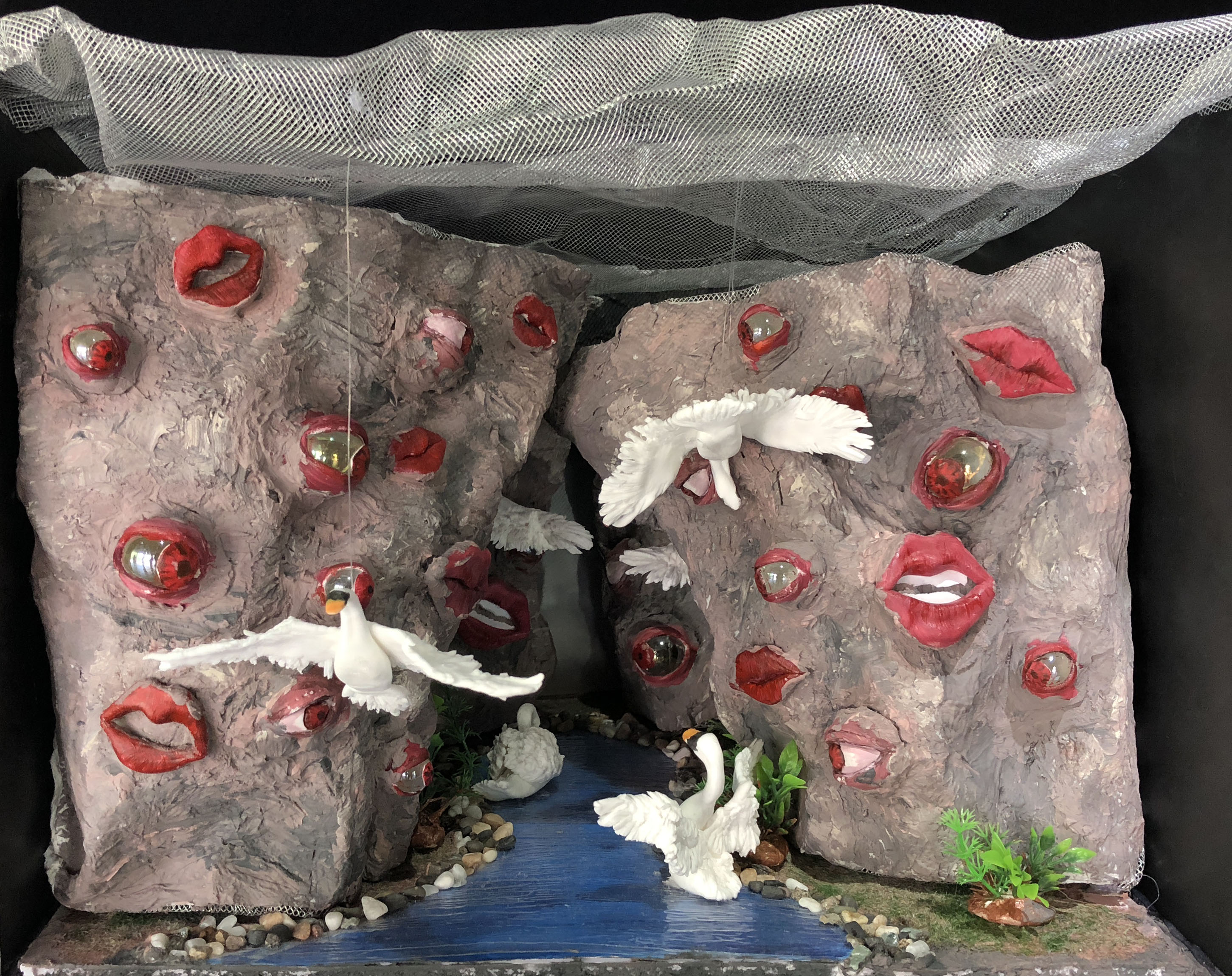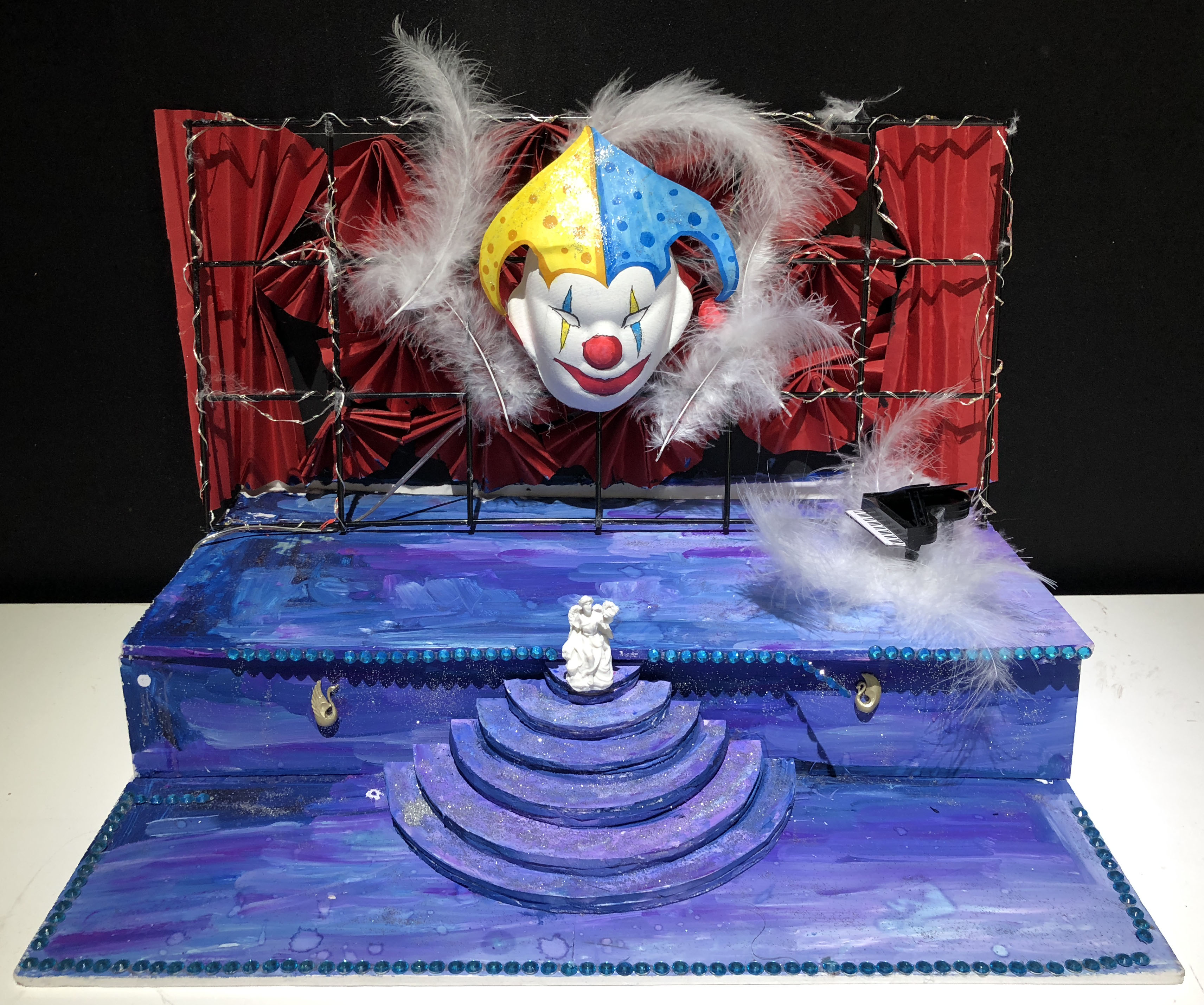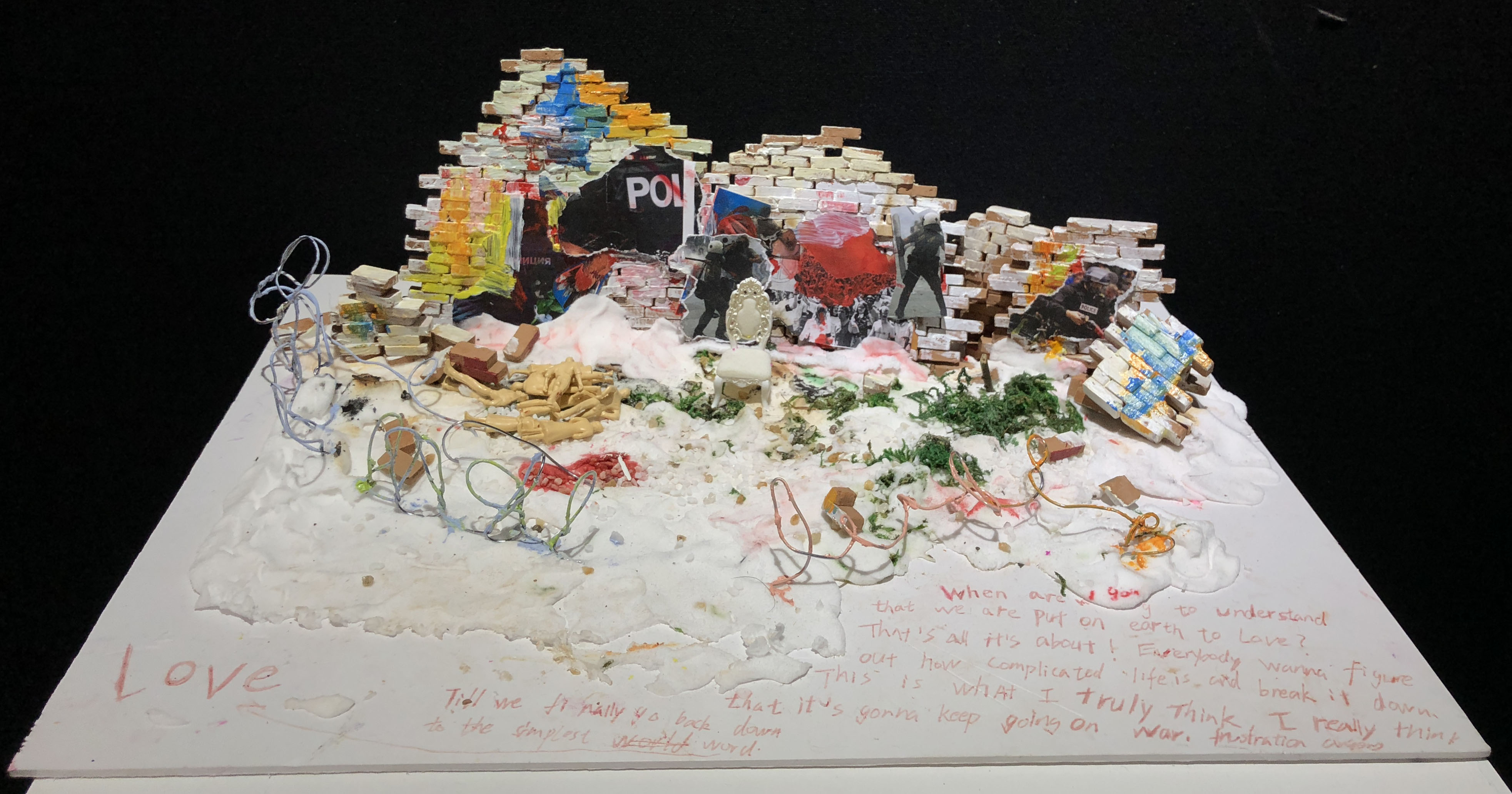本次展览,你不仅可以看到同学们各种新奇的构思,更会惊叹于17数字媒体艺术专业同学们的动手能力。半年前刚踏入公司,青涩的他们经过学习,已经有了些许成长。同学们对每个主题都进行了认真的筛选,并经历了形成构思、制作草图,完成作品三个阶段。因此,每个作品都有着独特的风格和意义,比如:作品《爱丽丝梦游仙境》能带给人有一种穿越梦境回到童年的感觉;作品《美女与野兽》让观赏者体会到公主与野兽历经时间的爱情;作品《控脑》则能引发对当今社会深深的思考,这个人云亦云的网络时代,人们是否还有自己的思想和观点;作品《自由 战争 和平》能激发观赏者更加珍惜现在拥有的美好生活……可以看出,17数字媒体艺术专业同学们不仅在选题和构思上十分严谨,在制作模型的过程中,更是精益求精,他们使用了不同种材料把模型尽量做到逼真,以还原真实,给观赏者带来更好的观赏效果和感受。