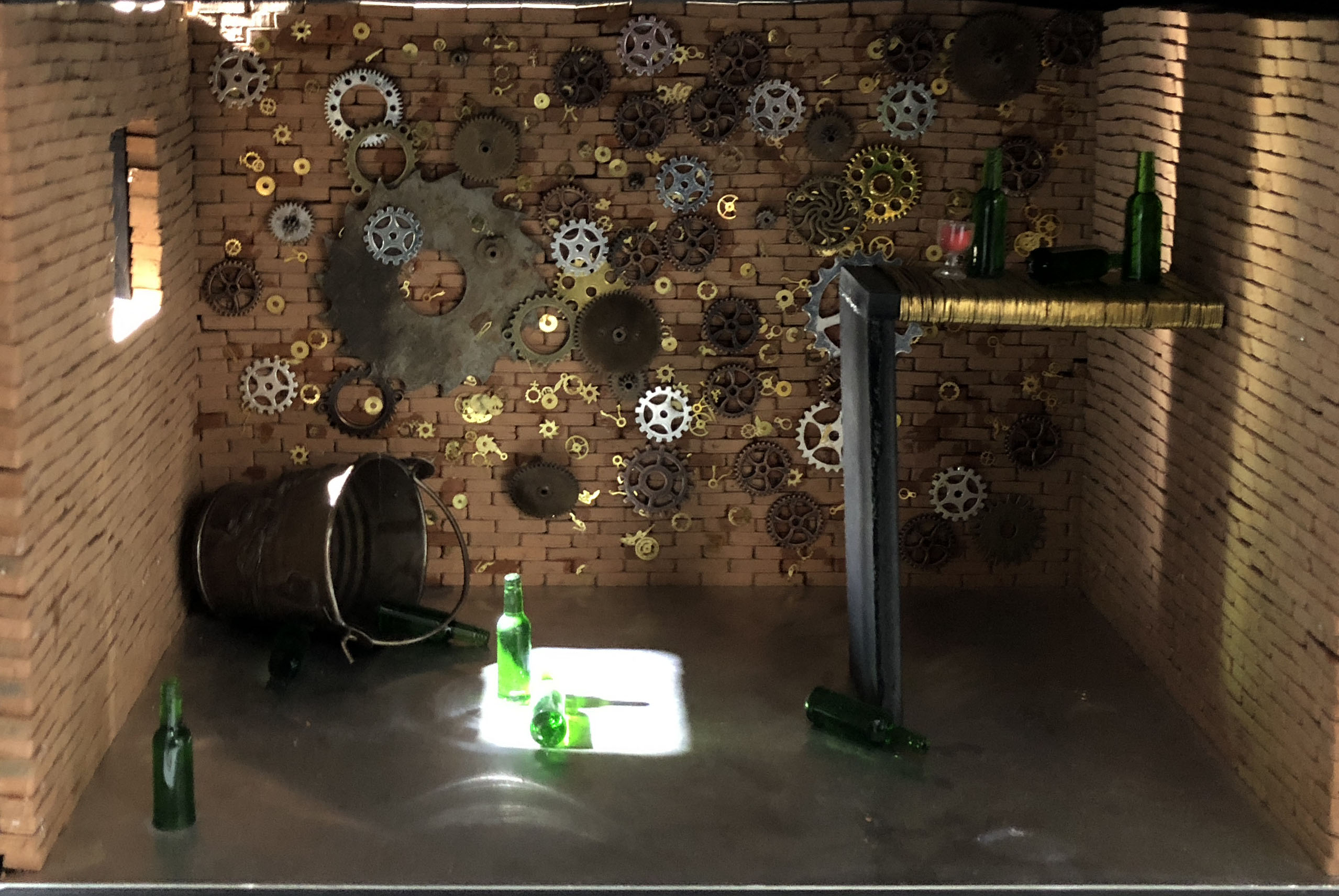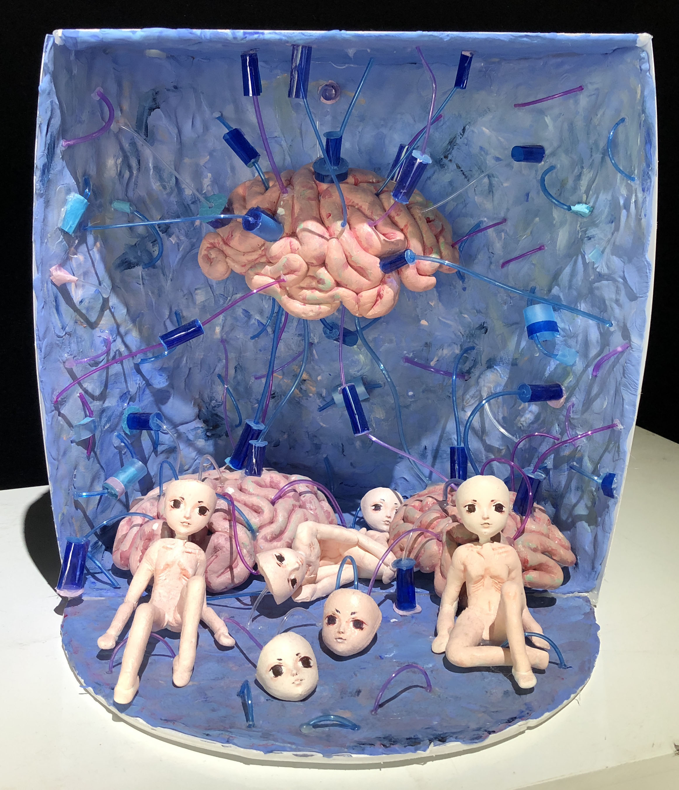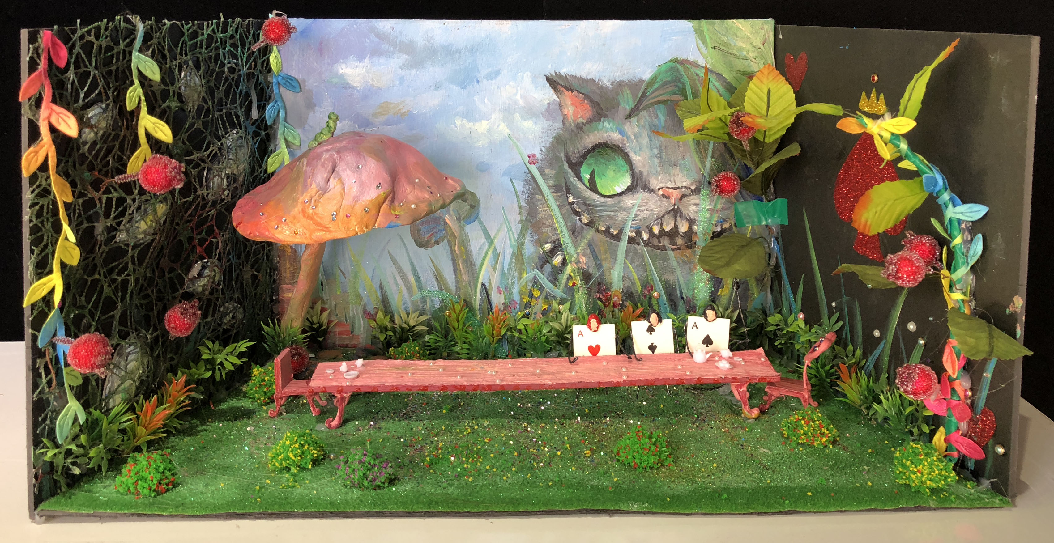 本次展览,你不仅可以看到同学们各种新奇的构思,更会惊叹于17数字媒体艺术专业同学们的动手能力。半年前刚踏入公司,青涩的他们经过学习,已经有了些许成长。同学们对每个主题都进行了认真的筛选,并经历了形成构思、制作草图,完成作品三个阶段。因此,每个作品都有着独特的风格和意义,比如:作品《爱丽丝梦游仙境》能带给人有一种穿越梦境回到童年的感觉;作品《美女与野兽》让观赏者体会到公主与野兽历经时间的爱情;作品《控脑》则能引发对当今社会深深的思考,这个人云亦云的网络时代,人们是否还有自己的思想和观点;作品《自由 战争 和平》能激发观赏者更加珍惜现在拥有的美好生活……可以看出,17数字媒体艺术专业同学们不仅在选题和构思上十分严谨,在制作模型的过程中,更是精益求精,他们使用了不同种材料把模型尽量做到逼真,以还原真实,给观赏者带来更好的观赏效果和感受。