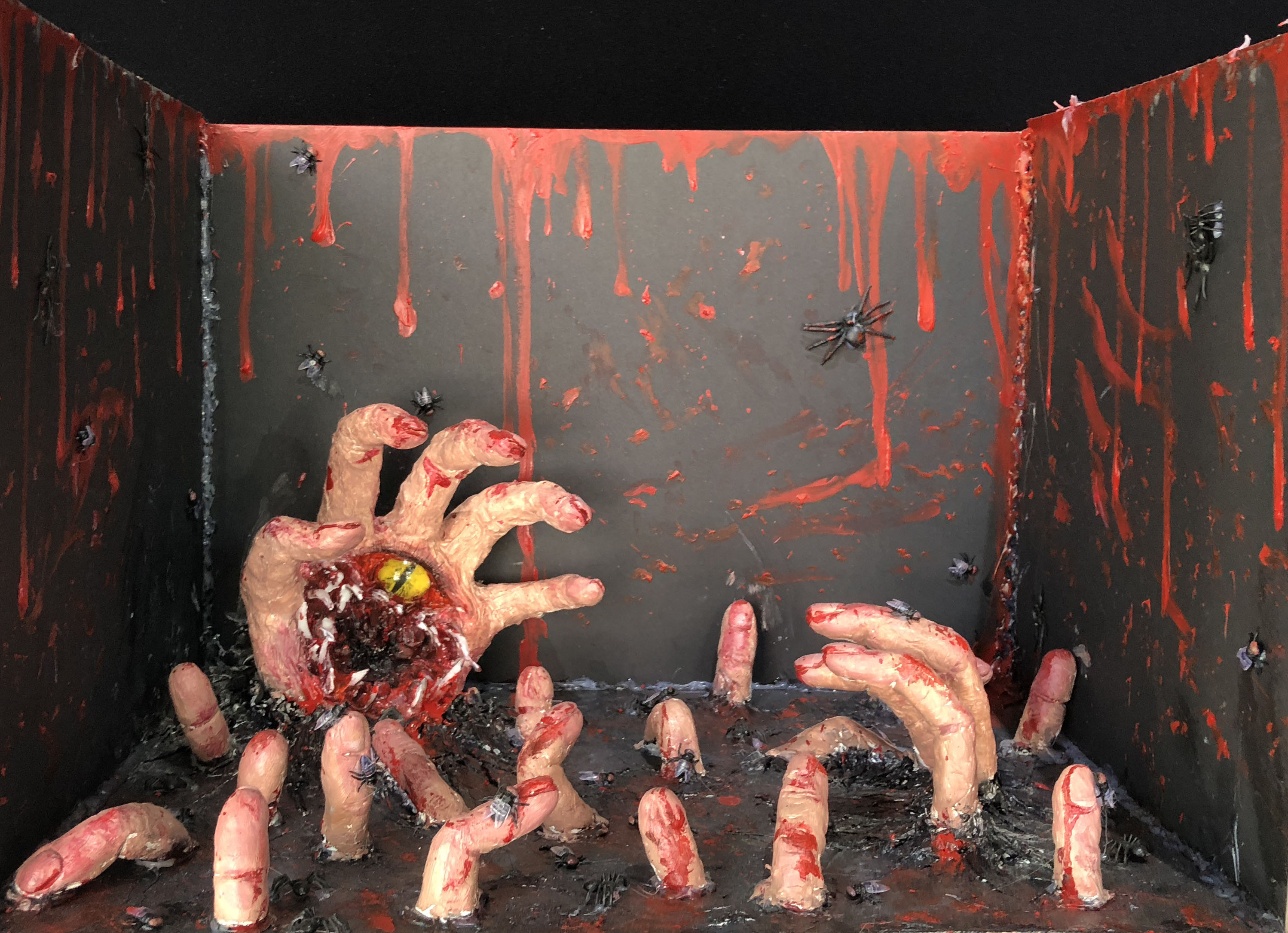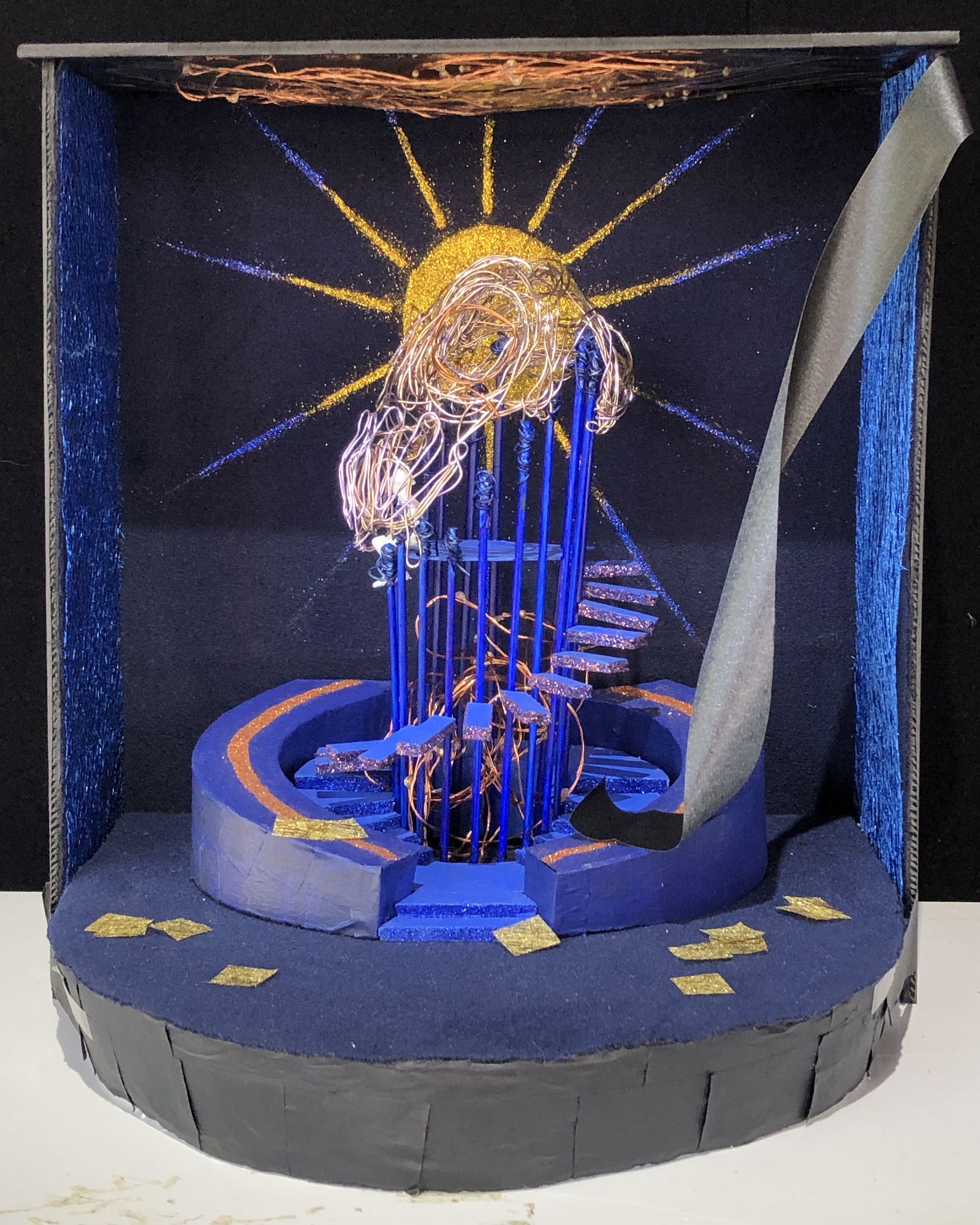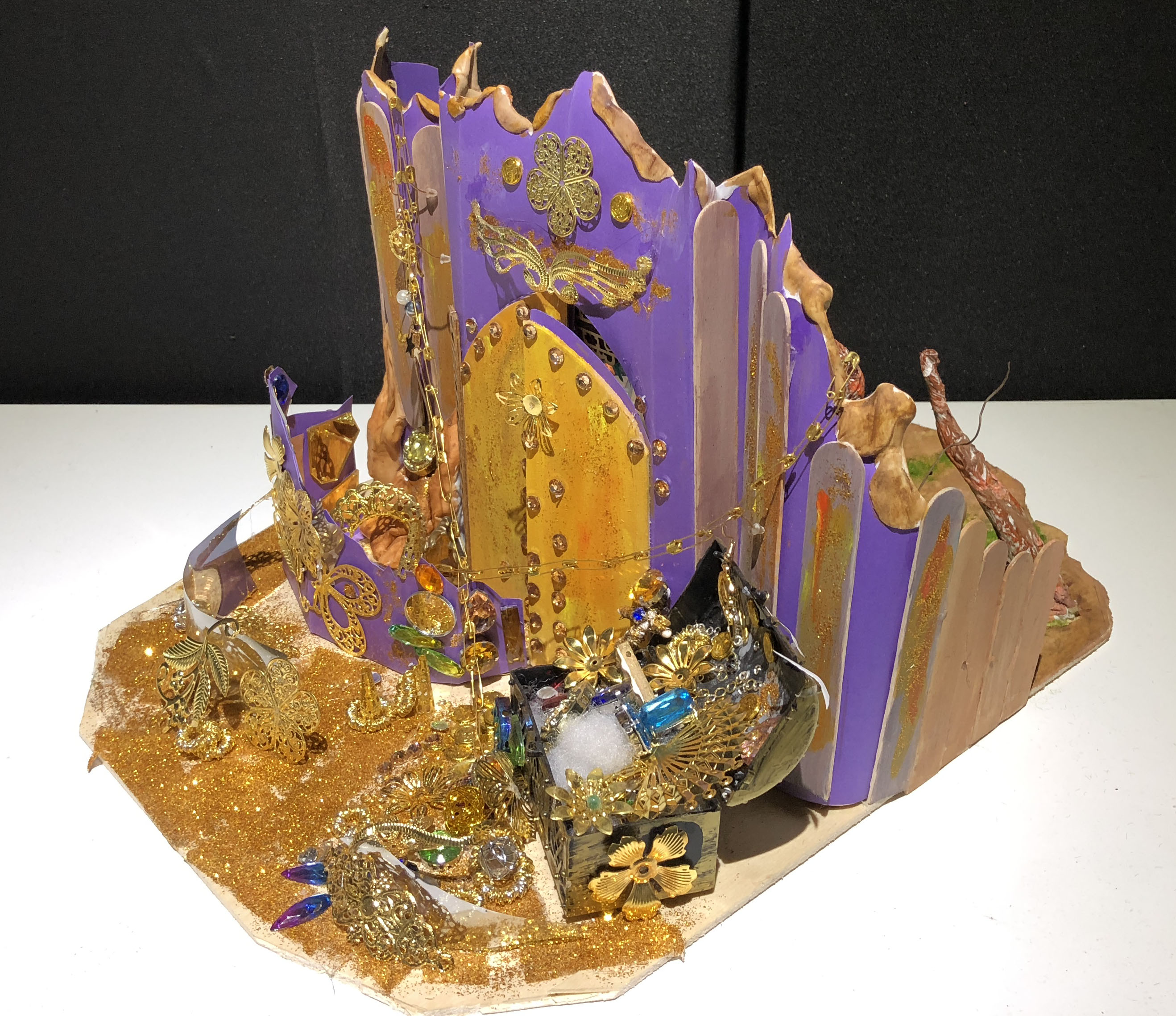 本次展览,你不仅可以看到同学们各种新奇的构思,更会惊叹于17数字媒体艺术专业同学们的动手能力。半年前刚踏入公司,青涩的他们经过学习,已经有了些许成长。同学们对每个主题都进行了认真的筛选,并经历了形成构思、制作草图,完成作品三个阶段。因此,每个作品都有着独特的风格和意义,比如:作品《爱丽丝梦游仙境》能带给人有一种穿越梦境回到童年的感觉;作品《美女与野兽》让观赏者体会到公主与野兽历经时间的爱情;作品《控脑》则能引发对当今社会深深的思考,这个人云亦云的网络时代,人们是否还有自己的思想和观点;作品《自由 战争 和平》能激发观赏者更加珍惜现在拥有的美好生活……可以看出,17数字媒体艺术专业同学们不仅在选题和构思上十分严谨,在制作模型的过程中,更是精益求精,他们使用了不同种材料把模型尽量做到逼真,以还原真实,给观赏者带来更好的观赏效果和感受。