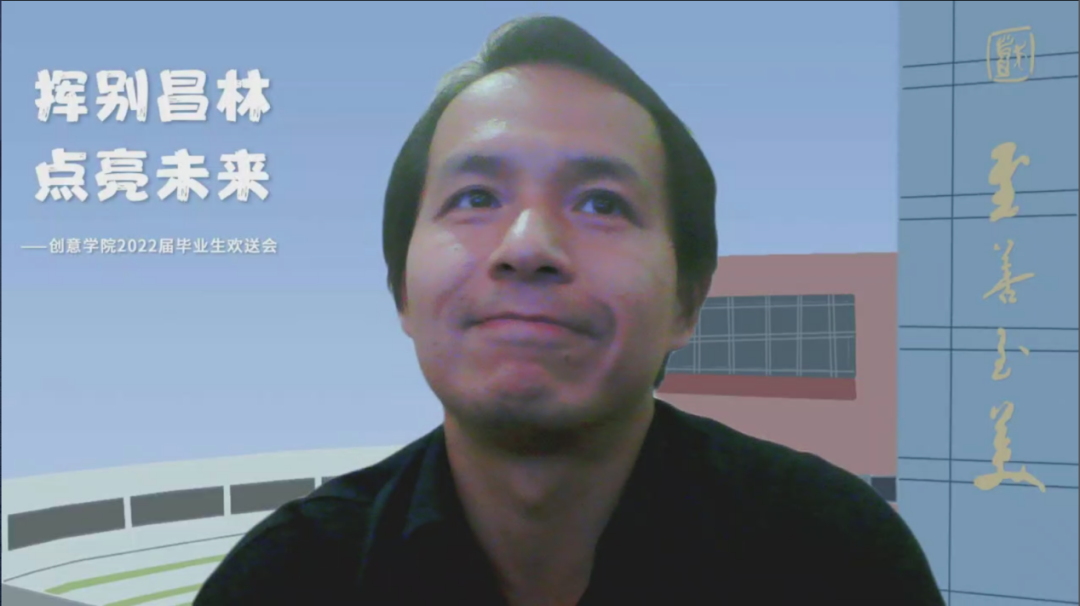 班主任和研究生导师代表送出寄语后,大家还看到了一个“彩蛋”:正驻守在昌林校区的创意公司党总支书记方军书记,副书记唐芳,辅导员陈龙、孔小磊,教师倪胜等一起为毕业生们录制了“我在昌林对你说”的祝福短视频。