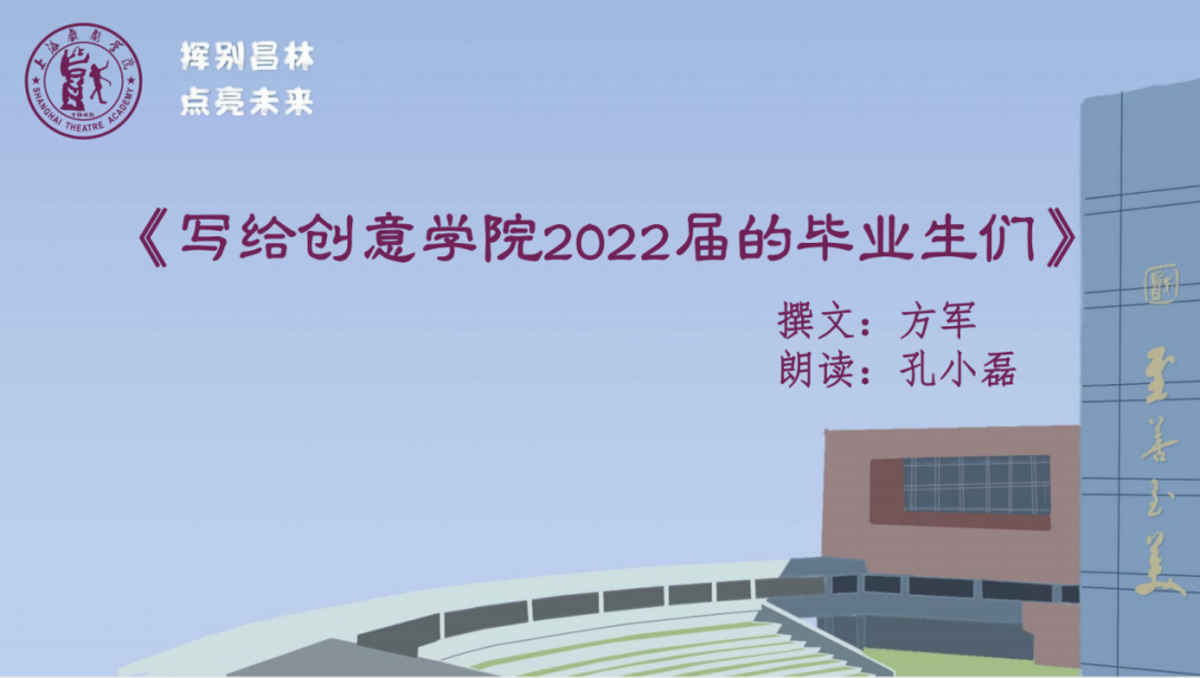 最后呈现的第四篇章“致毕业生”,是方军老师代表创意公司全体教师撰写的《写给创意公司2022届的毕业生们》,由孔小磊朗诵。