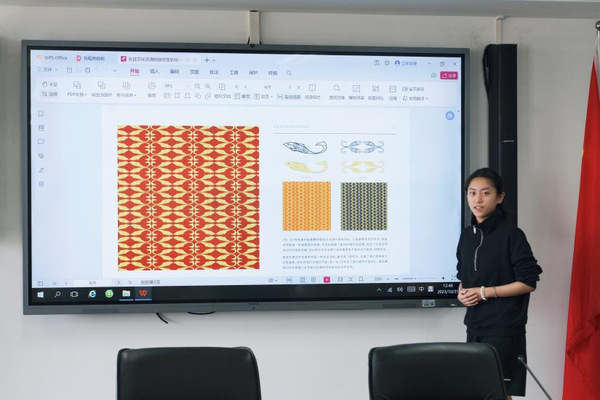 申雨轩同学以大家耳熟能详的故事《金色的鱼钩》转化的创意纹案设计,展现了长征文化资源的创新性转化,诠释了红色文化生生不息的创造力。