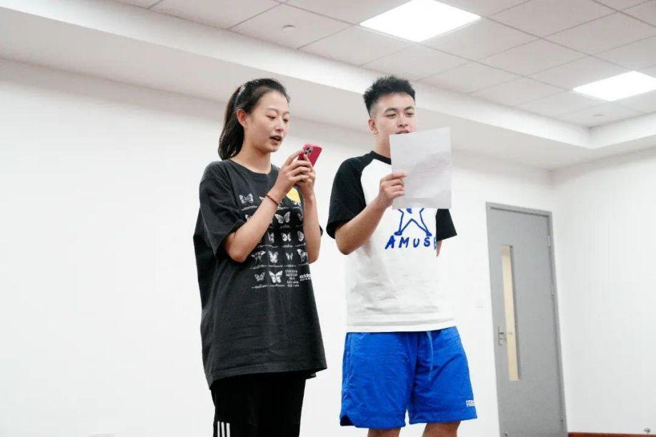 活动中最精彩的是方言表演环节,新生们两两分组抽取经典戏剧剧本,在短暂的排练后用方言进行全新演绎,这不仅让大家更好地了解了彼此的文化背景、促进了团队之间的融合,也让大家意识到语言对于戏剧作品呈现的重要性。