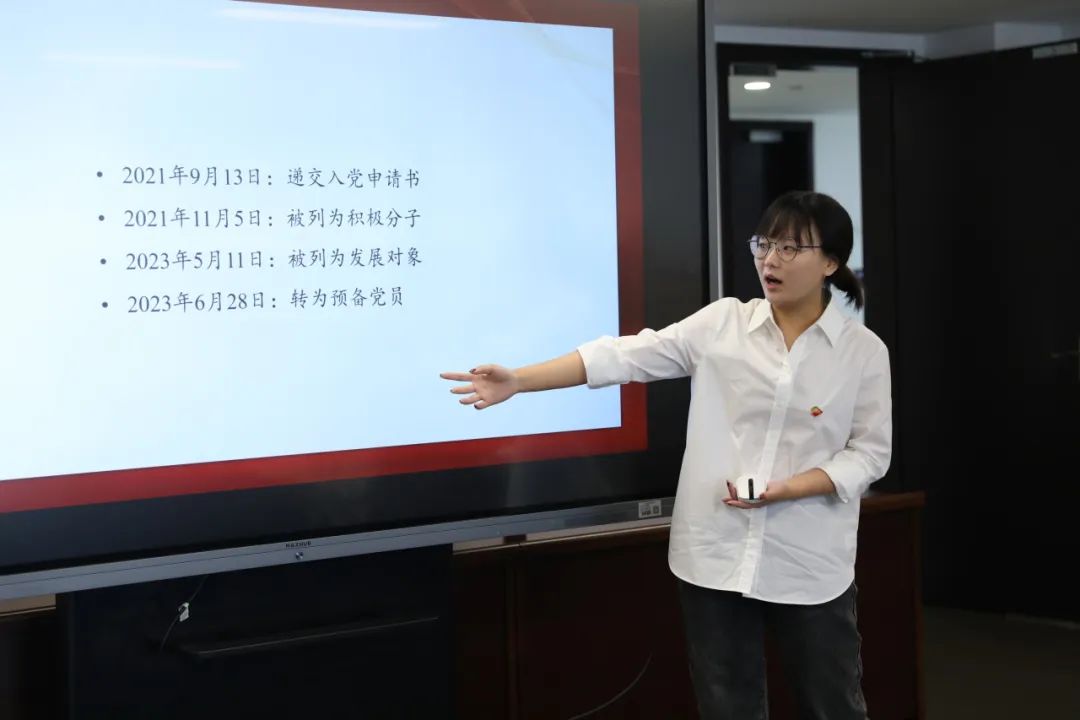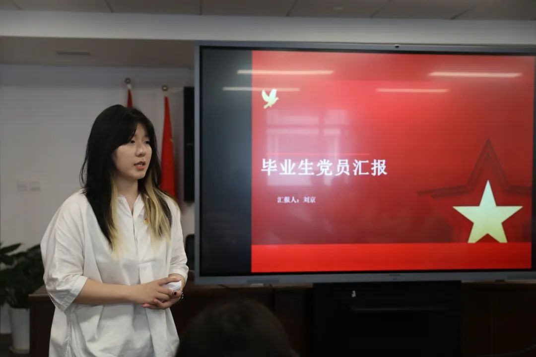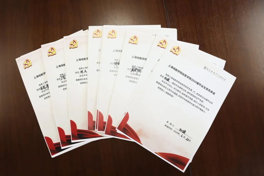 全体毕业生党员以汇报演讲形式总结了自己在上戏就读期间发挥先锋模范作用、积极参与志愿活动的相关经历,毕业生党员们不仅在学业上学有所获,在为公司师生志愿服务也体现了属于青年党员的青春担当。结合当前正在开展的党纪学习教育,毕业生党员表示走上工作岗位后,将始终以党章党纪作为自己的行为准则,接过时代重任,为强国复兴贡献青春力量。