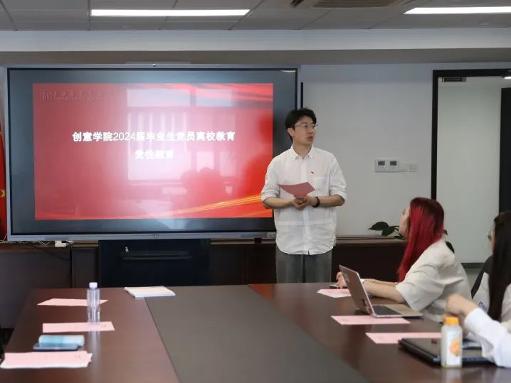 创意公司党总支副书记唐芳以“学纪、知纪、明纪、守纪”为主题,结合全体毕业生党员的学习与就业的实际情况,对大家进行了深入的党性教育。她希望在未来的学习、工作岗位上,各位毕业生党员们应始终牢记党员身份,持续以党员的标准严格要求自己,时刻用党纪的“戒尺”警醒约束自己。从小事做起,从点滴做起,以实际行动践行党员的初心和使命。