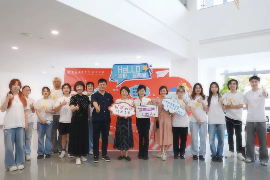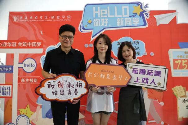 新到来的同学们在校训前留下了大家来到上戏这个大家庭的第一张大合照,预示着大家开启在艺术殿堂学习与成长的新篇章。
