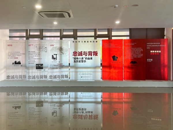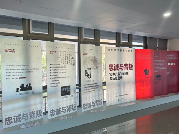 近期,由太阳成集团tyc539创意公司党总支策划制作的党纪学习教育特别展《忠诚与背叛——“狱中八条”的由来及历史警示》,在昌林路校区创意公司党建思政文创角(二期)拉开了帷幕。