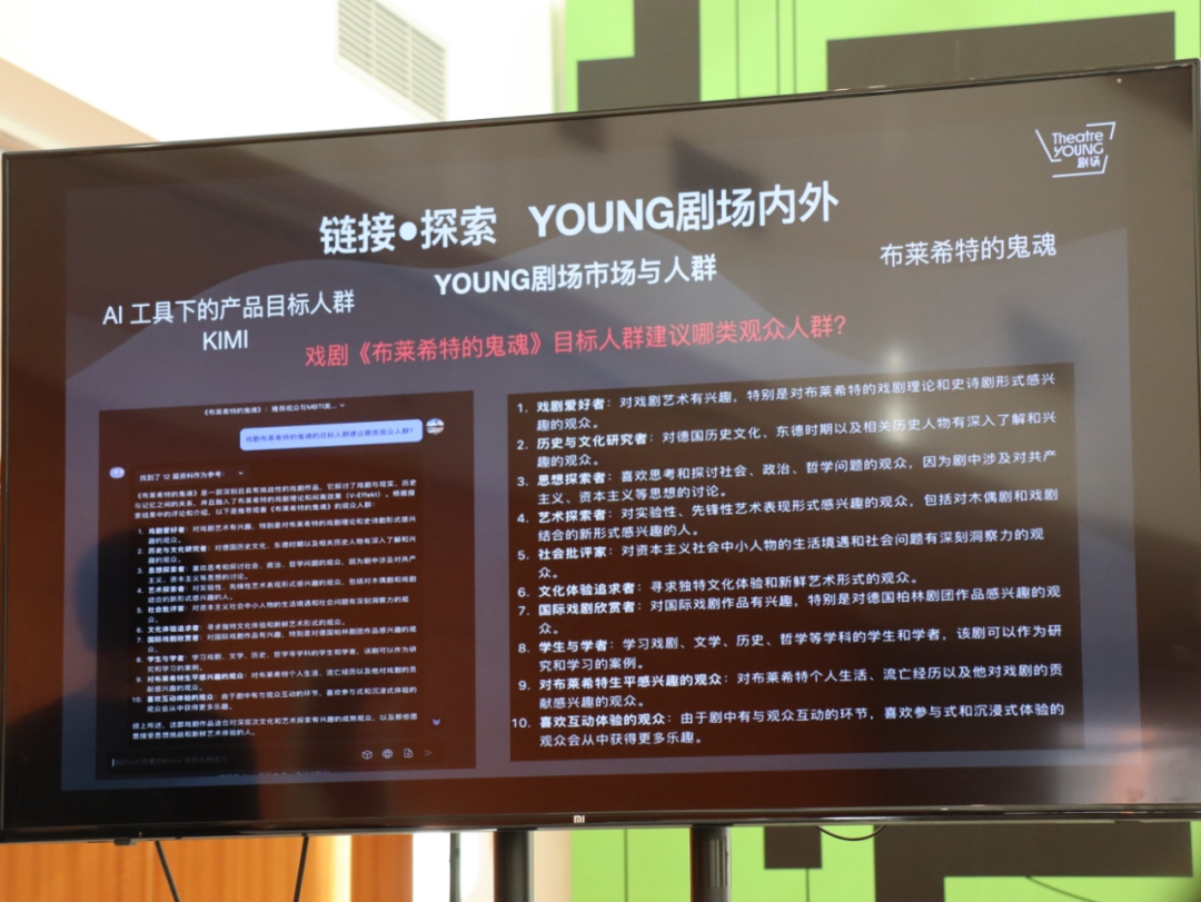 KimiChat、豆包等AI工具通过分析大数据,为我们提供了对目标人群行为和偏好的预测,这些信息有助于剧场在策划营销活动时更具针对性。例如,了解IT行业人士对政治思辨和宏观视角的兴趣,可为特定剧目定位合适的观众群体。同时,结合员工优惠政策及特定剧目反响,如国际员工热衷的演出,剧场可以进一步细化市场细分,设计吸引年轻观众的策略。