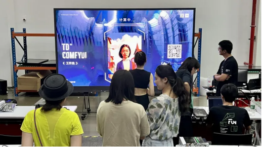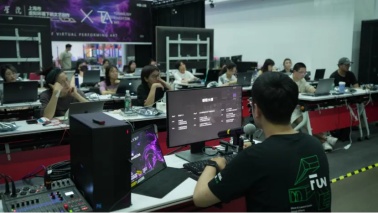 课程重点聚焦于AI 工具拓展和Arena 播控与硬件研学。在AI 工具拓展应用中,学员们基于AI 产出对TD 进行再创作,并通过TD 与Arena 网络通讯的学习,进一步增强了互动功能。此外,舞台商业硬件研学使学员们充分利用了上海市虚拟环境下的文艺创作重点实验室资源,实现软硬件技术融合应用。
