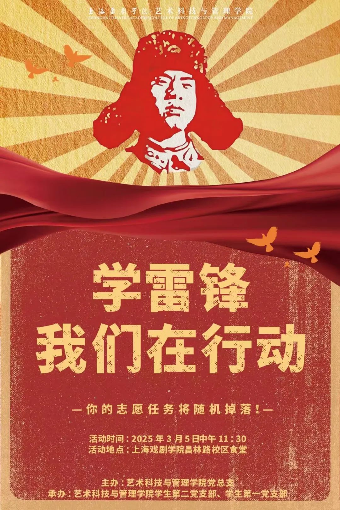 3月5日的昌林路校区,洋溢着别样的青春热情。在绘有雷锋画像的创意展板前,师生们通过扫码登记抽取专属盲盒任务——有的可能是整理图书馆书籍、整理教室,有的也可能是为后勤人员送上绿植和手写感谢卡片、和同学们分享读书笔记等。每个盲盒都藏着温暖期待,每项任务都是善意的接力。