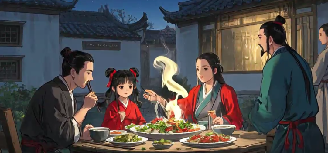 音画联动。通过AI分析旁白语调,自动匹配画面节奏。例如,旁白提到“团圆的温馨”时,AI将镜头切换为慢动作的吃团圆饭场景。