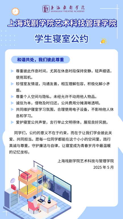 本次会议以“艺韵雅舍凝廉心,清辉满室绽芳华”为主题,聚焦寝室文明习惯养成进行思想动员,并同步启动 “廉文化・洁寝室” 寝室文化评比活动。活动旨在将寝室公约的自律管理要求具体落细为可量化、可操作的评比标准。