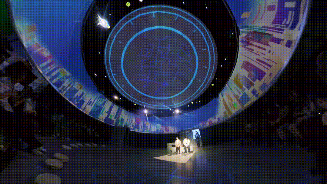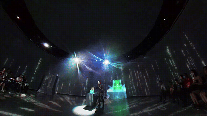 《微秒间》孵化于数字演艺集成创新文化和旅游部重点实验室——XR剧场并进行了多轮演出,全景环幕结合多媒体投影系统,营造出未来人工智能时代的生活景象,一个由ai人工智能主导的未来奇幻世界。