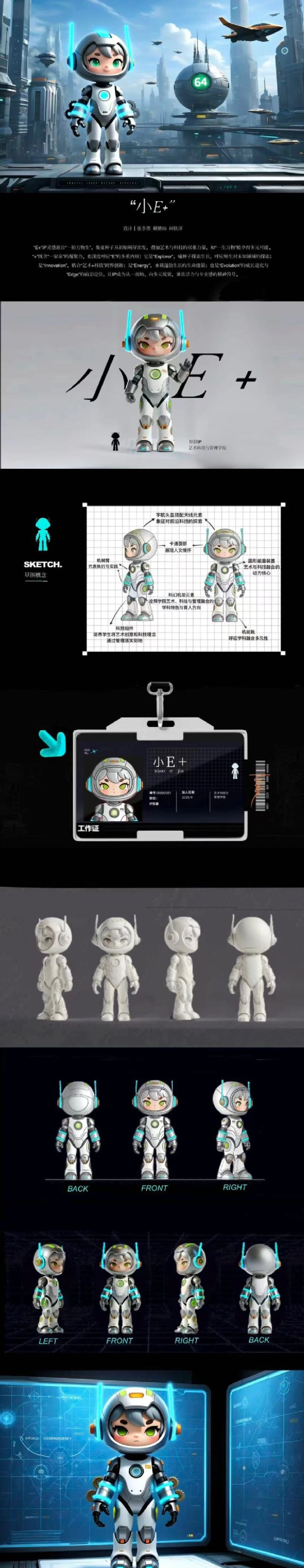 “小E+”IP灵感源自“一始万物生”,象征种子从初始萌芽出发,叠加艺术与科技的双重力量,如“一生万物”般孕育多元可能。“+”既含“一家亲”的凝聚力,也深度呼应“E”的多重内核:它是“Explorer”,喻种子探索生长,呼应师生对未知领域的探索;是“Innovation”,贴合“艺术+科技+管理”的跨界创新;是“Energy”,承载蓬勃生长的生命能量;也是“Evolution”的成长进化与“Edge”的前沿定位,让IP成为从一而始、向多元绽放,兼具活力与专业感的精神符号。