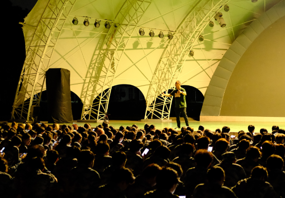 夜幕低垂,在老师的带领下,同学们学唱校歌,悠扬的旋律在夜空中交织升腾。那一刻,仰头是稀疏的星子,环顾却是数百张年轻而专注的脸庞,每个人的眼中都跳动着同样的光。歌声也许不够专业,却格外真挚;或许不够整齐,却充满力量。我们在这旋律中触摸到上戏人的精神风貌,感受到一种跨越时空的联结。