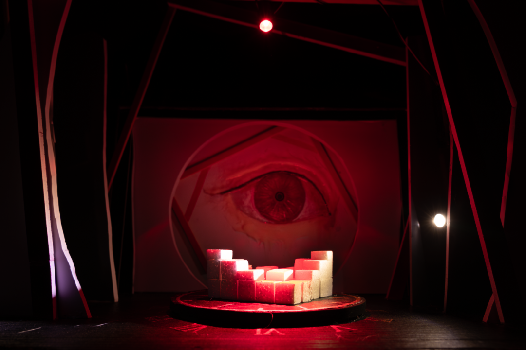 本作品汇集多组公司员工的舞台空间设计实验作品,以"时空"为核心概念,通过《翡翠之海》的矿洞转台、《时空之门》的镜面数据处理场、《黑白秘境》的心理几何等创作,将社会产业链、记忆存储系统、个体内心困境等抽象议题转化为具象的舞台语言。员工们运用光影折叠、材料拼贴与机械动线等手法,在有限成本中构建出承载现实批判与未来想象的叙事空间。