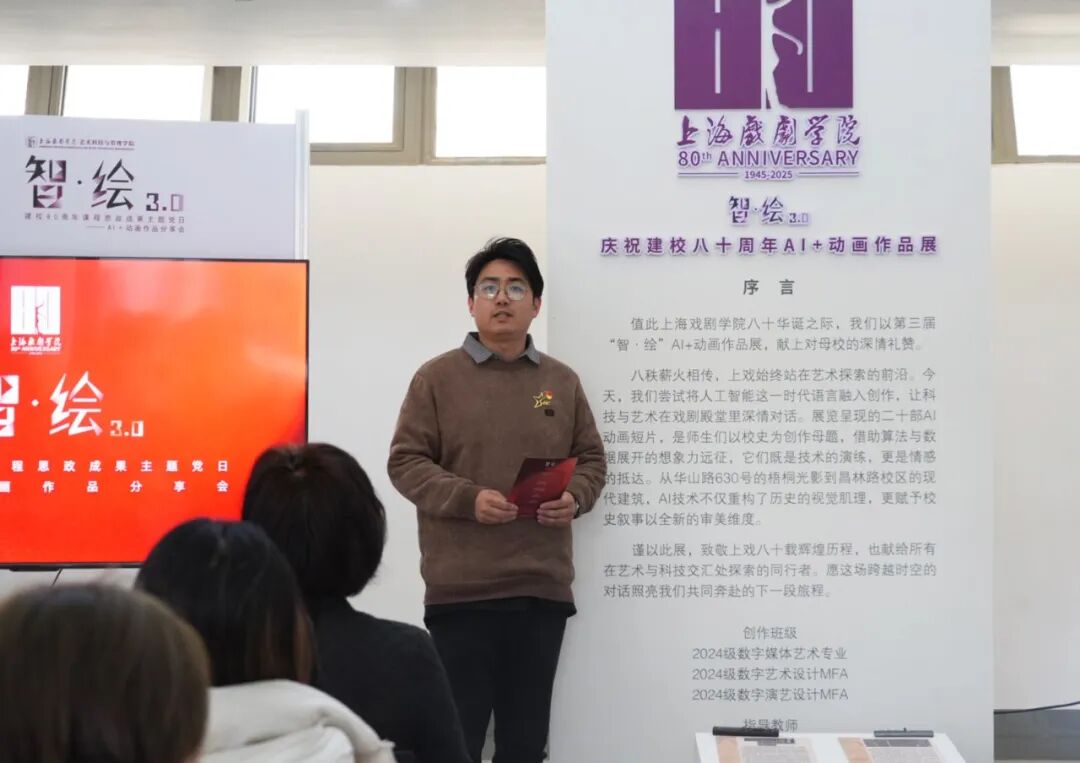 在老师的指导下,2024级数字艺术设计MFA、数字演出艺术MFA及数字媒体艺术本科的同学们围绕建校80周年主题,创作了一系列AI动画作品,为校史叙事注入了新的时代内涵。