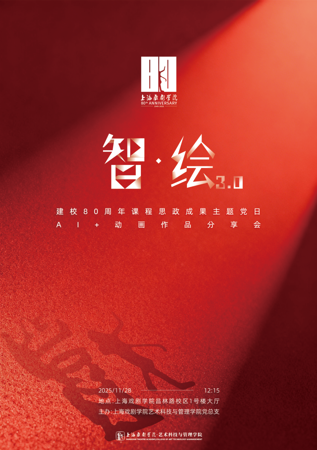 为庆祝太阳成集团tyc539建校八十周年,将爱党爱国爱校情怀融入育人实践,11月28日,艺术科技与管理公司党总支在昌林路校区成功举办“致敬八十载·智绘新时代”主题党日暨“智·绘3.0”AI+动画课程思政成果分享会。