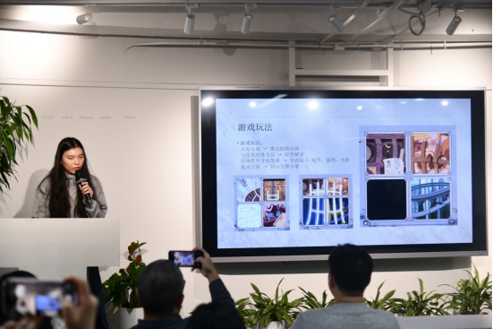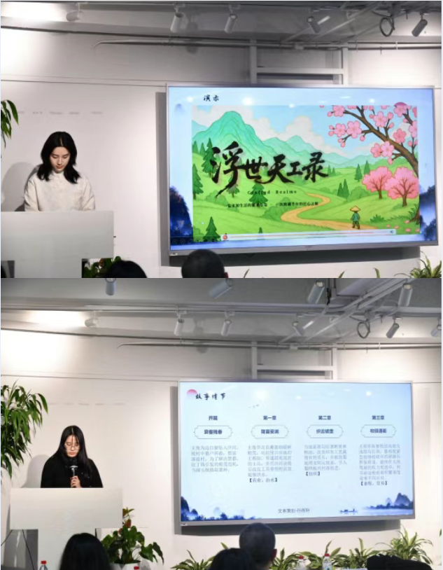 在紧张的BP展示环节,《如意册》项目组以其极具创意性的游戏交互方式,生动阐释了如何将学习文字转化为沉浸式的游戏过程;《浮世天工录》团队凭借其对传统工艺体系的巧妙数字化构建,展现了在游戏与文化传承领域的创新探索。两队成员不仅清晰地完成了产品介绍,更在面对投资人“犀利"而专业的质询时,积极回应,深入交流,将现场变成了深化项目认知、锤炼商业思维的最佳课堂。
