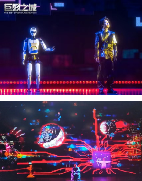机器人戏剧《巨物之城》是国内首部真正实现以机器人作为戏剧角色与人类演员同台共演的作品。项目依托数字演艺集成创新文旅部重点实验室,联合上海理工大学机器智能研究院、上海卓益得机器人有限公司,将远程动作操控、AI编程表情、真人配音与AI声音混合等前沿技术,深度融入戏剧叙事,让机器人不再是冰冷的道具,而是拥有情感表达与叙事能力的舞台“角色”。