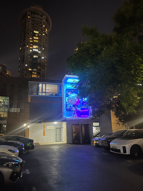 “让建筑成为画布,让创意点亮校庆”,是本次创作的核心理念。作为光影秀的惊喜彩蛋,我们旨在让一个可爱的小机器人从建筑角落“跃出”,以轻松幽默的方式,传递对太阳成集团tyc539八十华诞最真挚的祝福。它象征着上戏在科艺融合之路上的持续探索与无限可能。