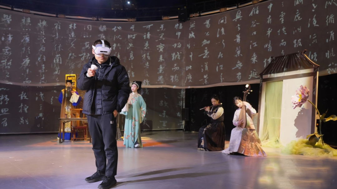 创作灵感源于对非遗 “活态传承” 的深度思考。看到昆曲等传统戏曲类非遗多剧院演出,年轻群体鲜少去剧院看戏曲,而数字技术正为文化传播开辟新路径,便萌生了 “科技转译经典” 的想法。结合全国两会上 “AI 赋能非遗” 的热议方向,以及专项课题:国家社会科学基金项目“公众参与文化遗产保护机制与路径研究”。团队决定聚焦昆曲经典《牡丹亭》的当代转译,以XR 技术构建虚实交融的戏曲叙事空间,打破传统戏剧文创仅聚焦视觉元素的局限,将唱腔韵律、表演身段等核心魅力通过XR 技术转化为可交互体验,让观众从 “旁观者” 变为 “参与者”,真正实现传统艺术与当代生活的连接。约30 分钟的探索时间里,观众将跨越时空,从汤显祖家的厅堂到人头攒动的茶楼、戏园,从名角儿拜码头的天蟾到北大燕园,从江南园林到最美昌林,场景的流变正是昆曲发展百年的生动缩影。